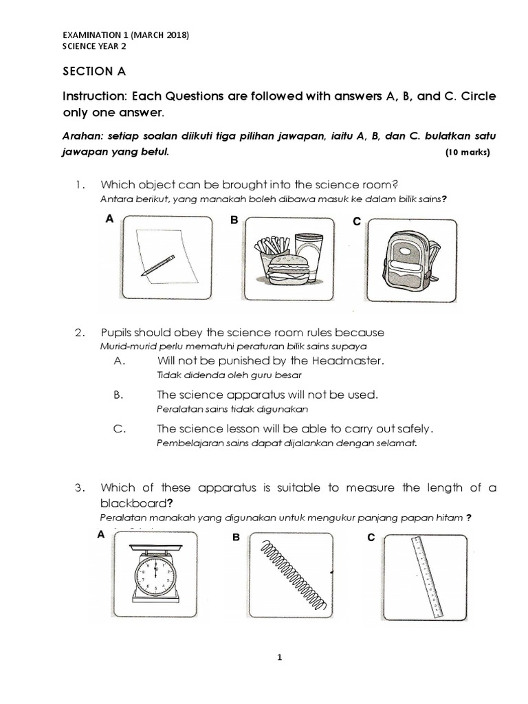 Soalan Sains Tahun 2 Ujian Mac Semakan Kssr 2018 Mac Berat Pdf